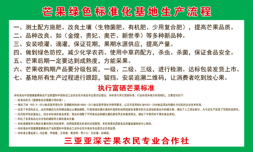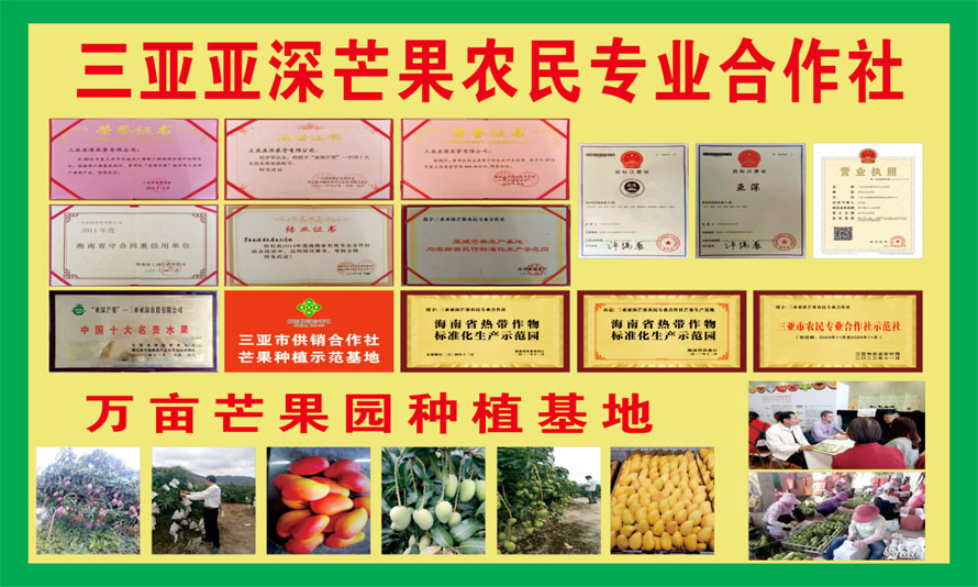 三亚芒果种植拥有得天独厚的自然条件:三亚种植芒果,在国内具有独特区位优势,气候、光照条件好,每年二至七月均有大量芒果出产,具有较强的市场优势。公司生产的“亚深”牌芒果荣获中国十大名贵水果(亚深)品牌。公司具备比较完善的农产品销售网络,各种优质芒果(金黄、红玉、奥芒、红叶、台农、红金龙)